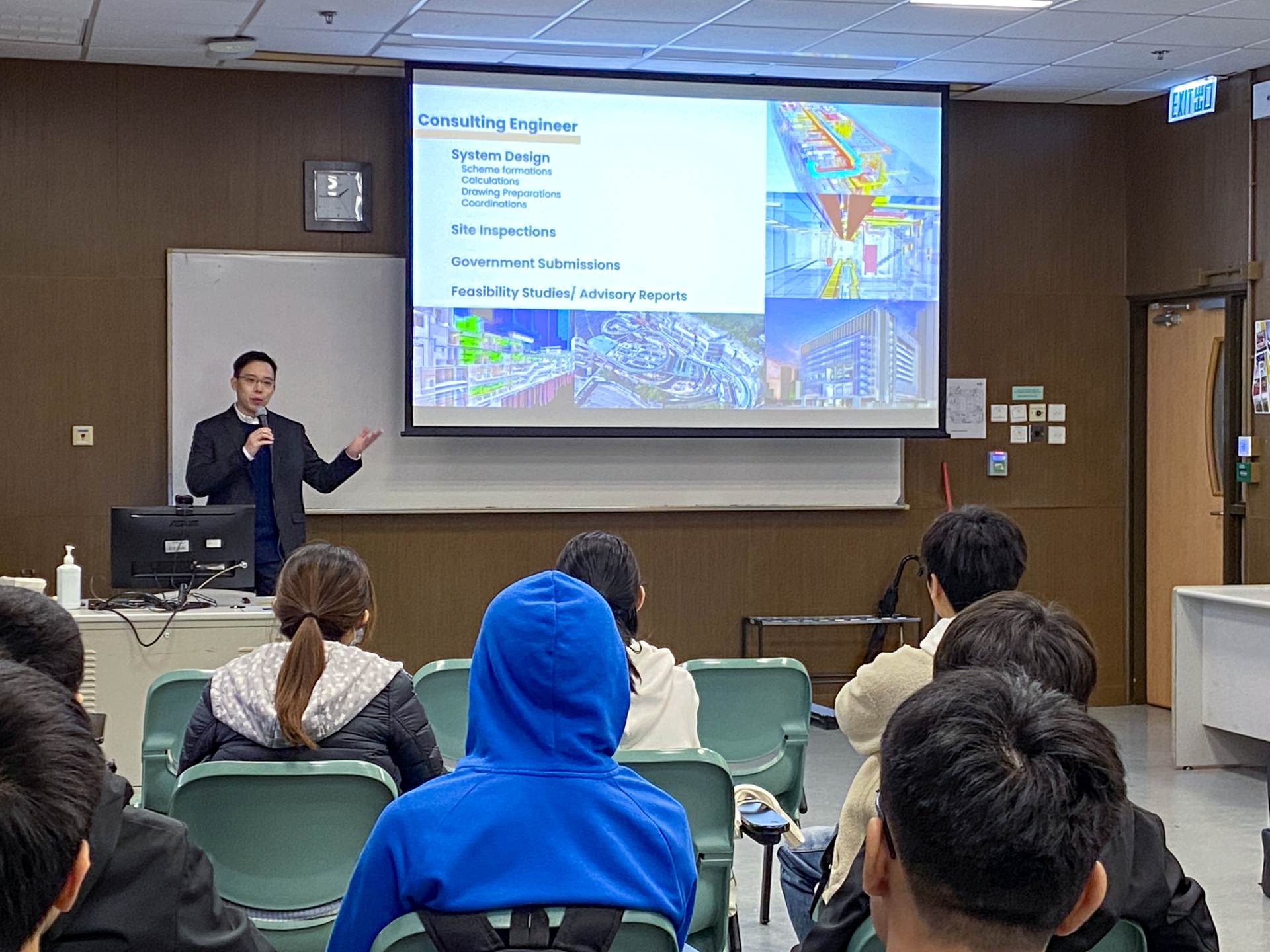 分享會中,嘉賓除了與同學們分享日常工作範疇、職涯規劃發展、行業資訊等,更分享了工程項目如何融入ESG元素,為建築物及環境綠化,減少用電量等。同時,我們Don Nelson 同事亦鼓勵同學們在學時期可透過多參與與業界有關的講座、實習、考察及比賽等,豐富個人經歷,更有效地裝備自己。