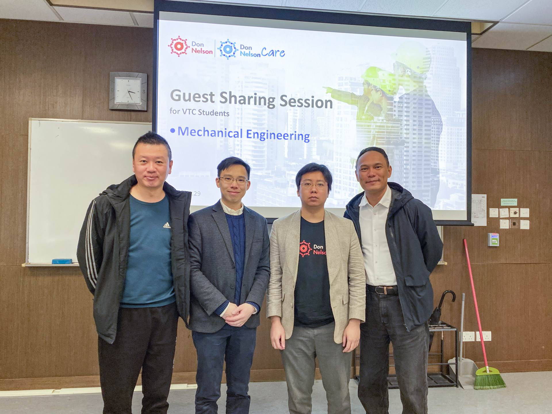Don Nelson 再次獲VTC職業訓練局邀請,一連兩日為就讀不同學科的工程同學們舉辦與行業相關的職場分享會,邀請了從事Electrical Engineering 電機工程、Mechanical Engineering 機械工程、Occupation Safety 職業安全三個範疇的嘉賓作分享。